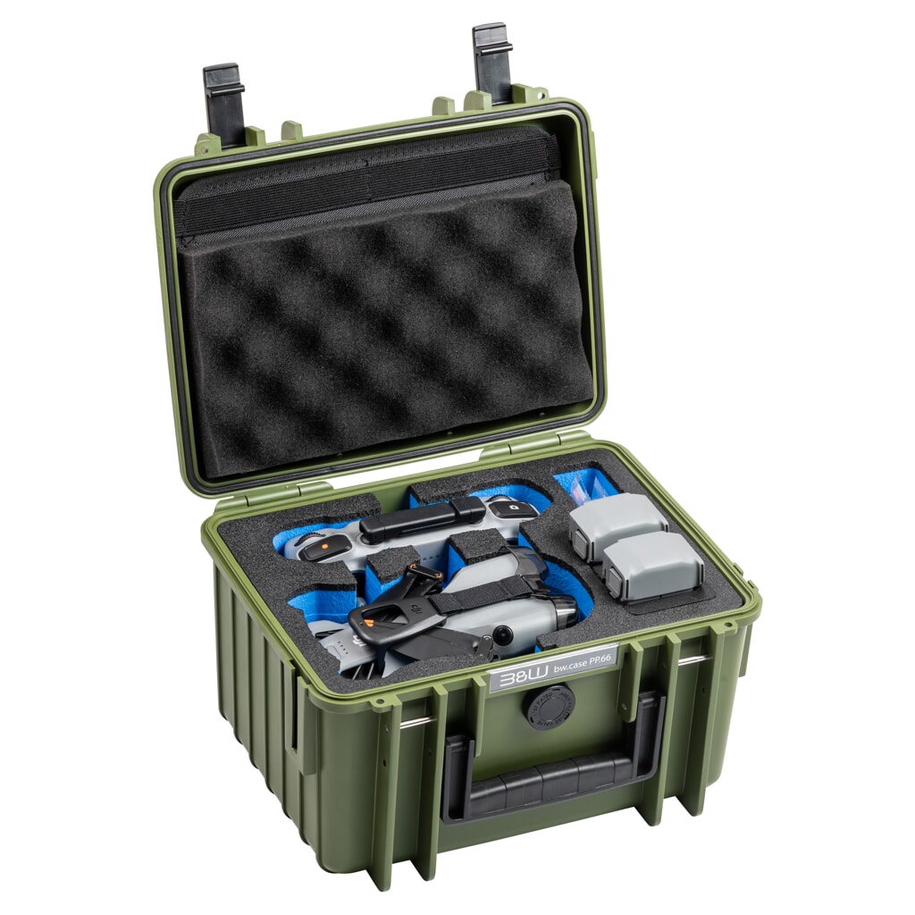 Walizka typ 2000 to mała walizka transportowa B&W outdoor.cases świetnie nadająca się do transportowania delikatnych rzeczy, elektroniki (aparaty fotograficzne, kamery, urządzenia pomiarowe, itd.) oraz innych wartościowych przedmiotów. Walizka typ 2000 DJI Mini 5 PRO zielona posiada dedykowany do dronów DJI Mini 5 PRO wkład, idealnie dopasowany do zestawu drona z akcesoriami.