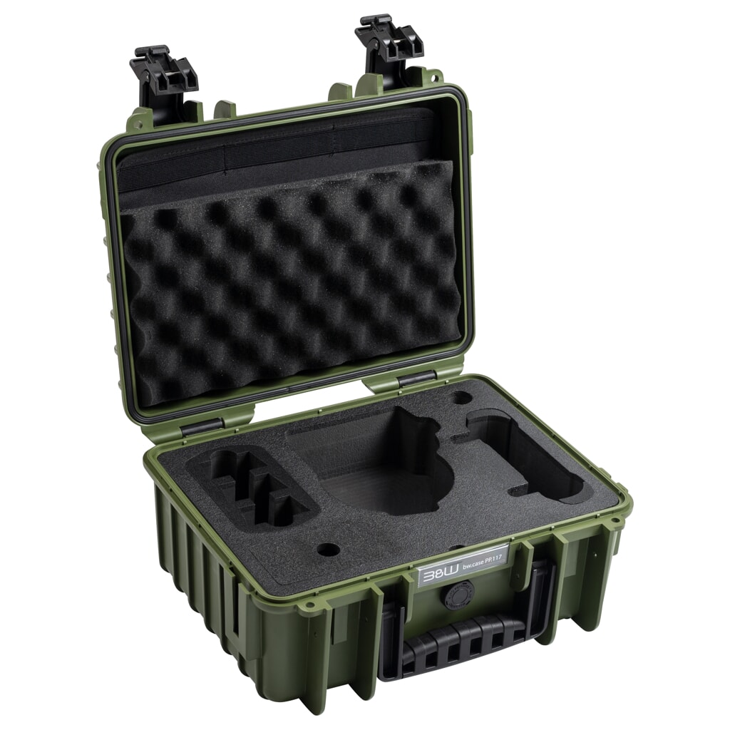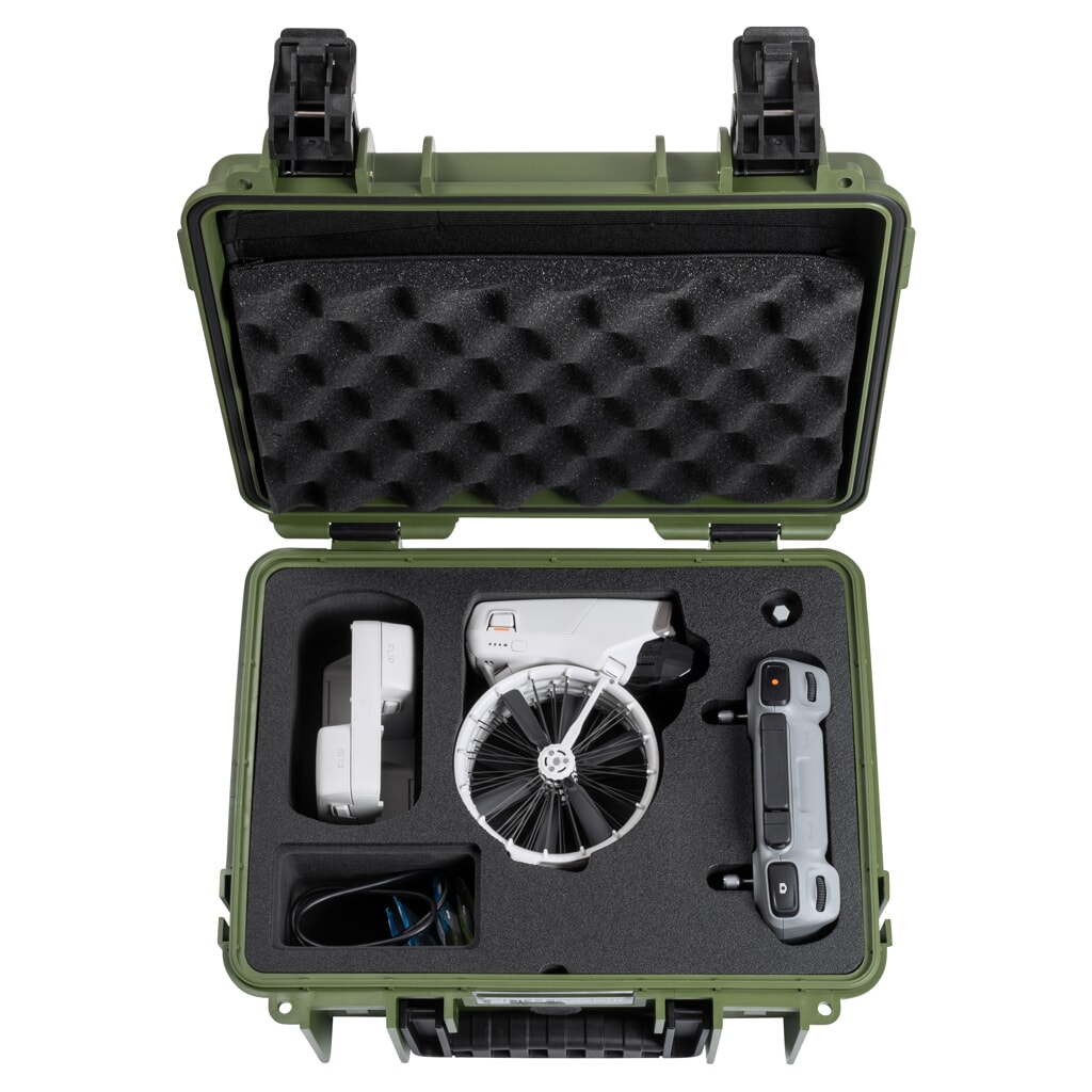 Walizka transportowa B&W outdoor.cases Typ 3000 to niewielka walizka świetnie nadająca się do transportowania delikatnych rzeczy, elektroniki (aparaty fotograficzne, kamery, urządzenia pomiarowe, itd.) oraz innych wartościowych przedmiotów. Wersja do dronów DJI Flip posiada dedykowany do drona DJI Flip wkład. Został on wycięty tak, aby pomieścił się tam dron wraz z kontrolerem DJI RC 2 lub DJI RC-N3, 5 akumulatorami i niezbędnymi akcesoriami. Walizka transportowa B&W outdoor.cases Typ 3000 jest idealnym towarzyszem dla drona. Wkład z pianki gwarantuje wyjątkową amortyzację drona, dzięki czemu będzie w pełni chroniony. Wkład zapewnia dużo miejsca na dron i dodatkowe wyposażenie, takie jak podstawka ładująca, zapasowe śmigła i do 5 akumulatorów (w tym jeden zamontowany w dronie). Jest kompatybilny ze sterownikami DJI RC-N3 i DJI RC2.