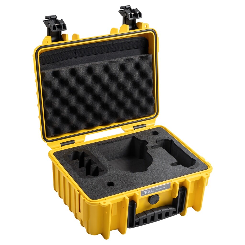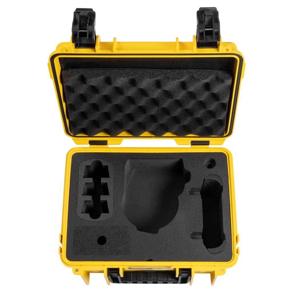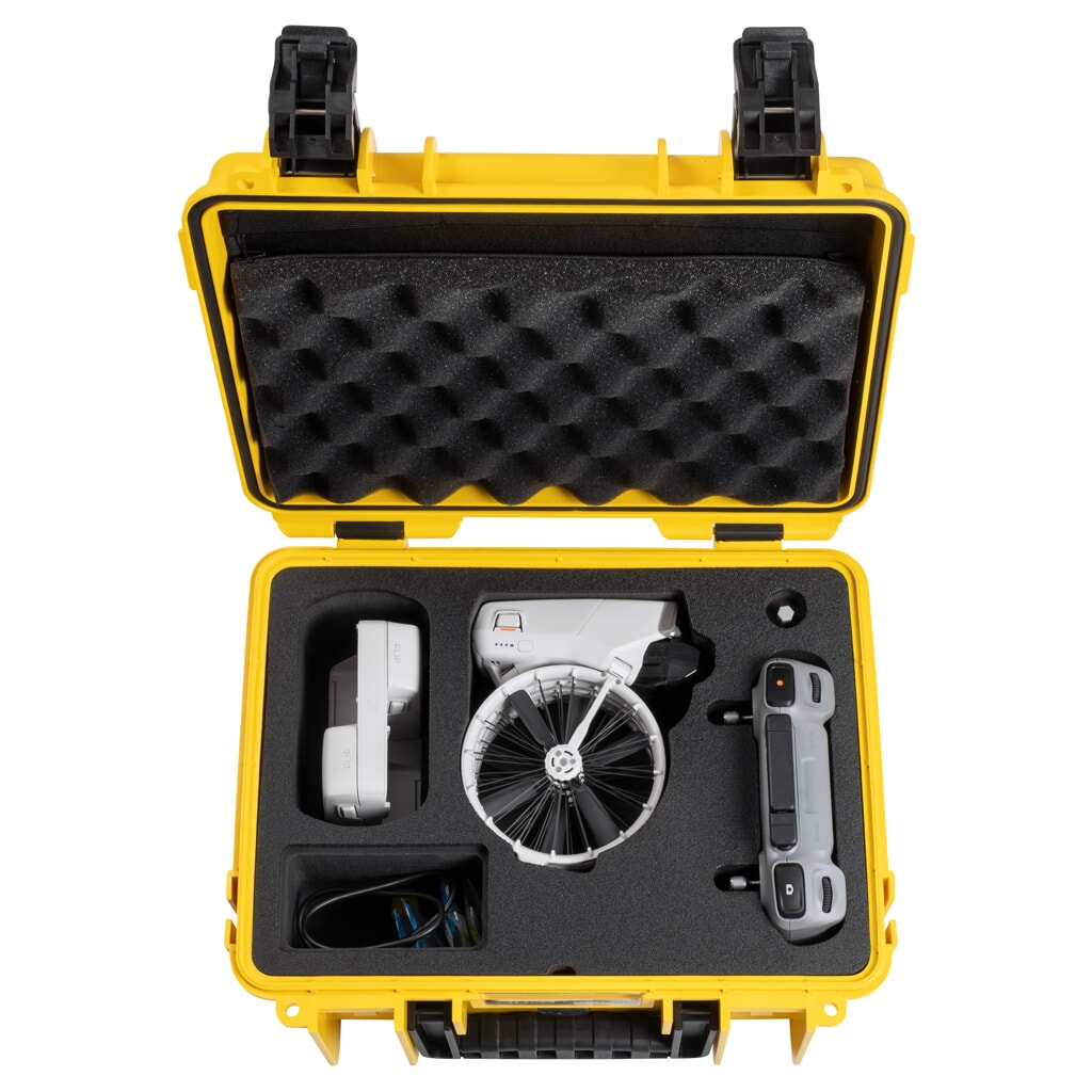 Walizka transportowa B&W outdoor.cases Typ 3000 to niewielka walizka świetnie nadająca się do transportowania delikatnych rzeczy, elektroniki (aparaty fotograficzne, kamery, urządzenia pomiarowe, itd.) oraz innych wartościowych przedmiotów. Wersja do dronów DJI Flip posiada dedykowany do drona DJI Flip wkład. Został on wycięty tak, aby pomieścił się tam dron wraz z kontrolerem DJI RC 2 lub DJI RC-N3, 5 akumulatorami i niezbędnymi akcesoriami. Walizka transportowa B&W outdoor.cases Typ 3000 jest idealnym towarzyszem dla drona. Wkład z pianki gwarantuje wyjątkową amortyzację drona, dzięki czemu będzie w pełni chroniony. Wkład zapewnia dużo miejsca na dron i dodatkowe wyposażenie, takie jak podstawka ładująca, zapasowe śmigła i do 5 akumulatorów (w tym jeden zamontowany w dronie). Jest kompatybilny ze sterownikami DJI RC-N3 i DJI RC2.